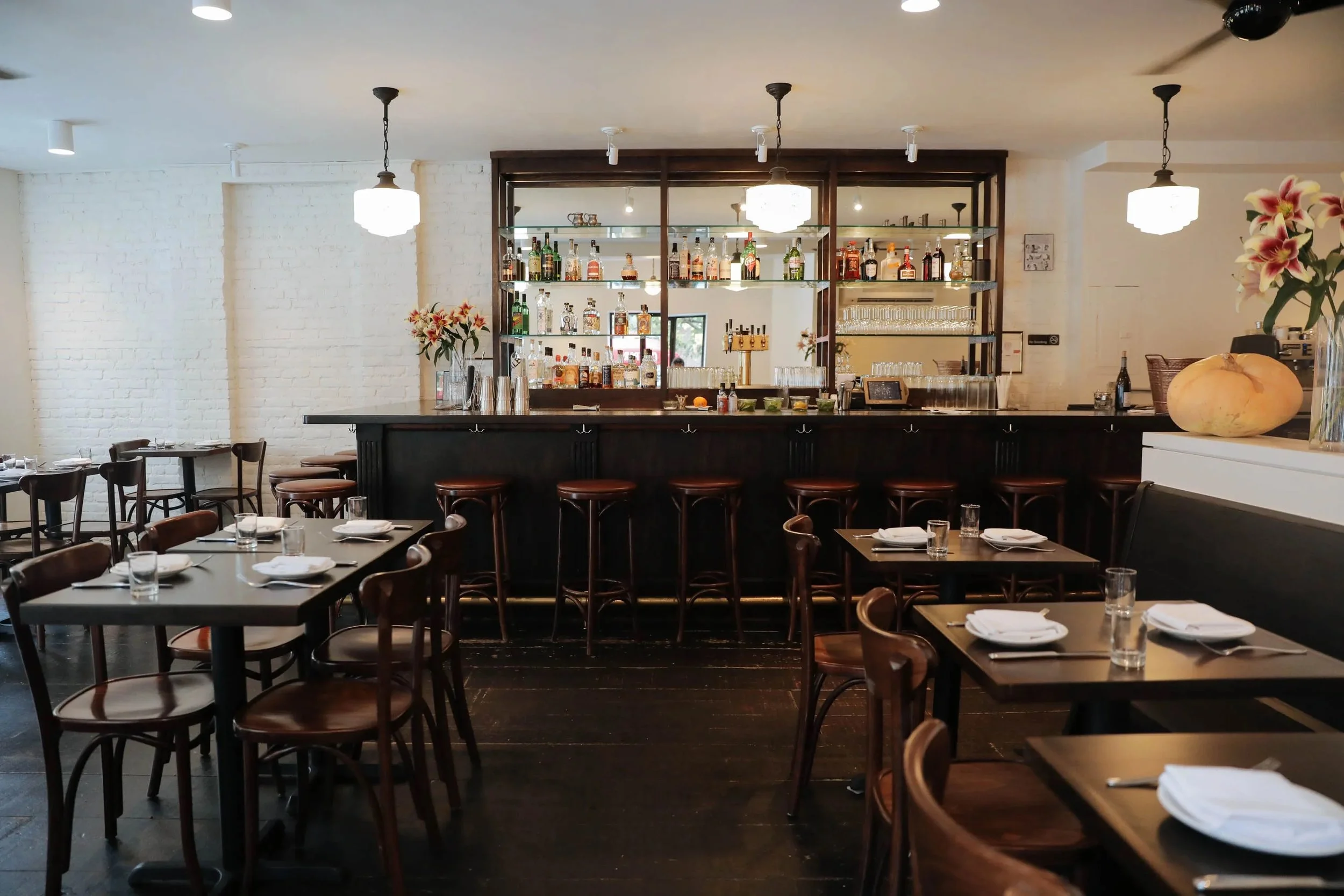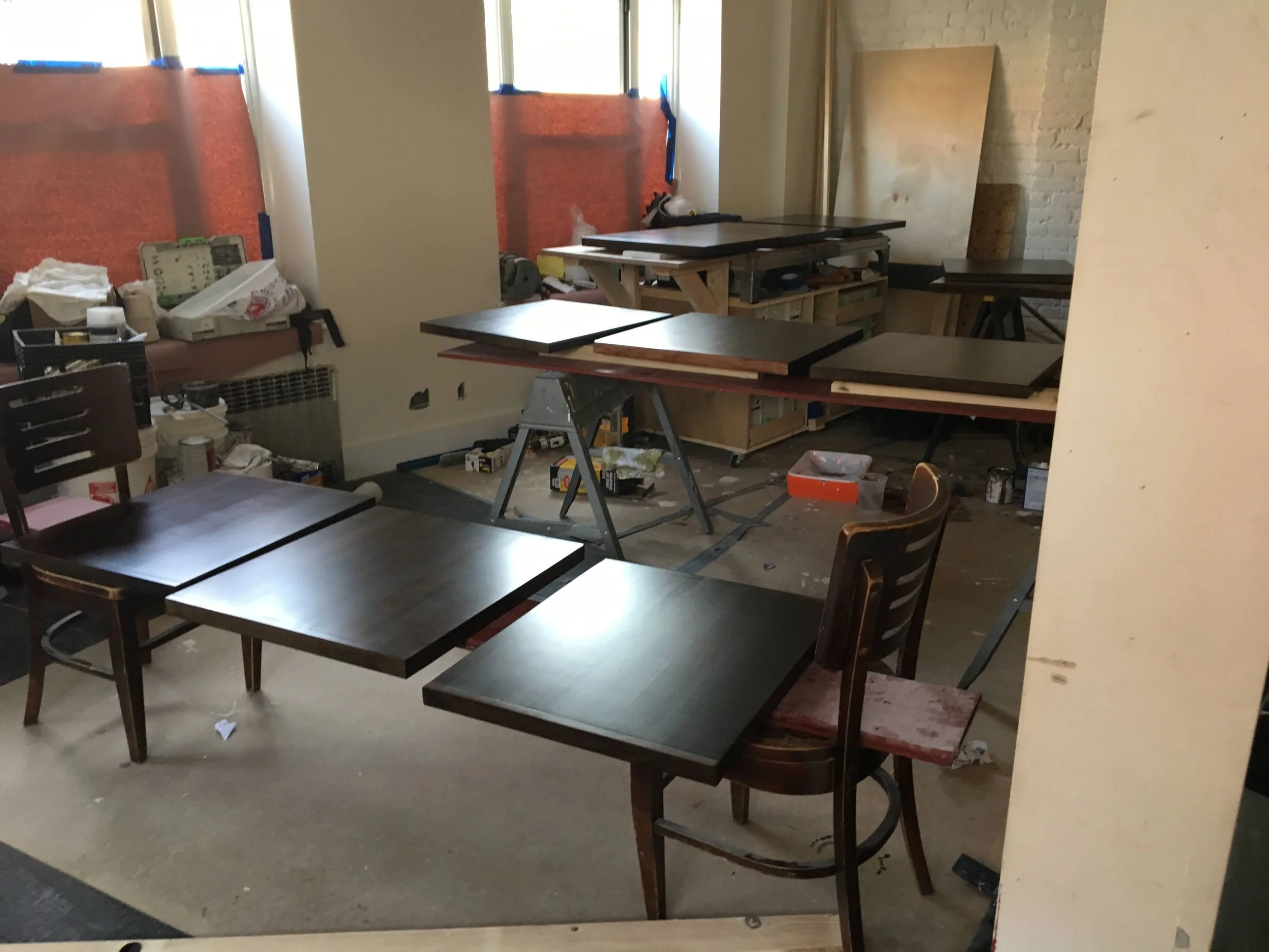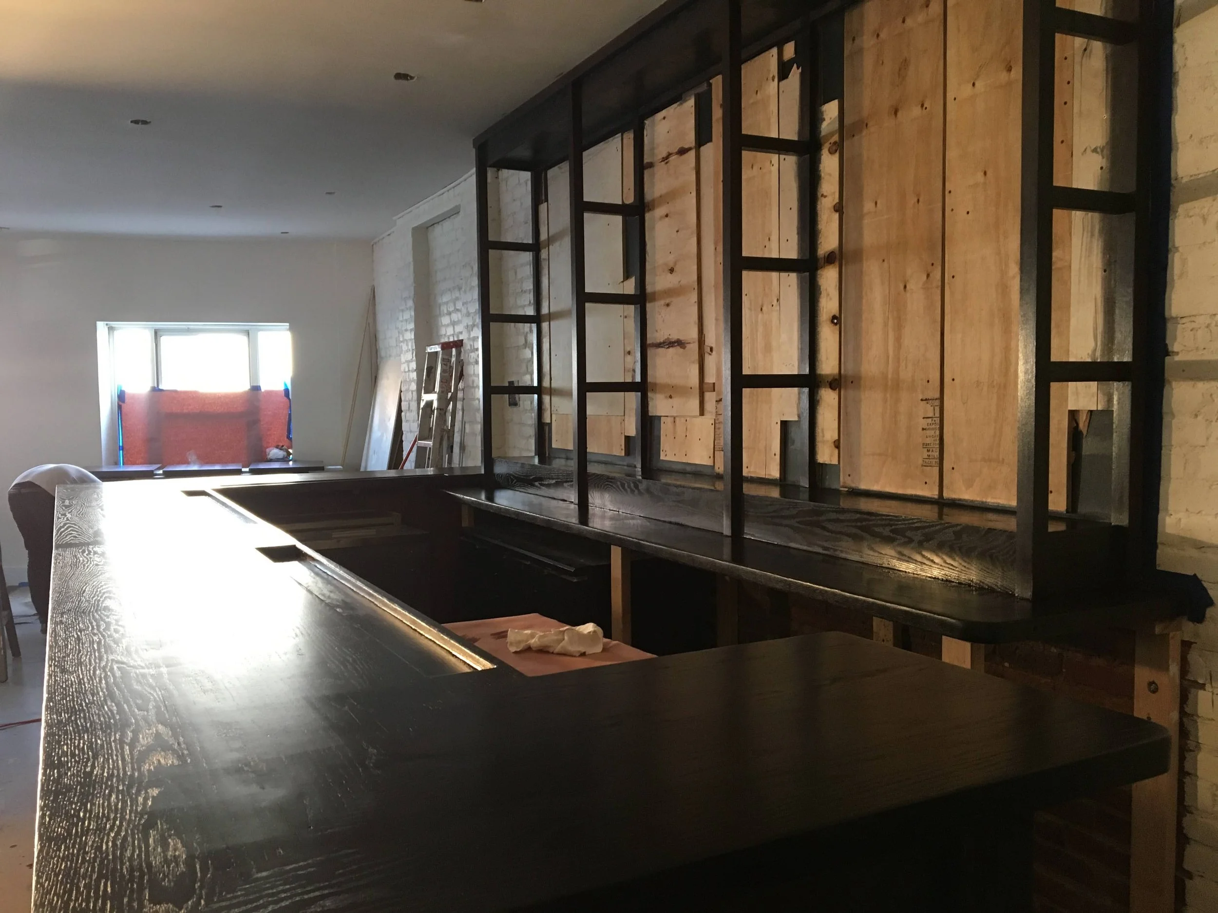 Design, fabrication, and installation of banquettes, back bar, and tables.