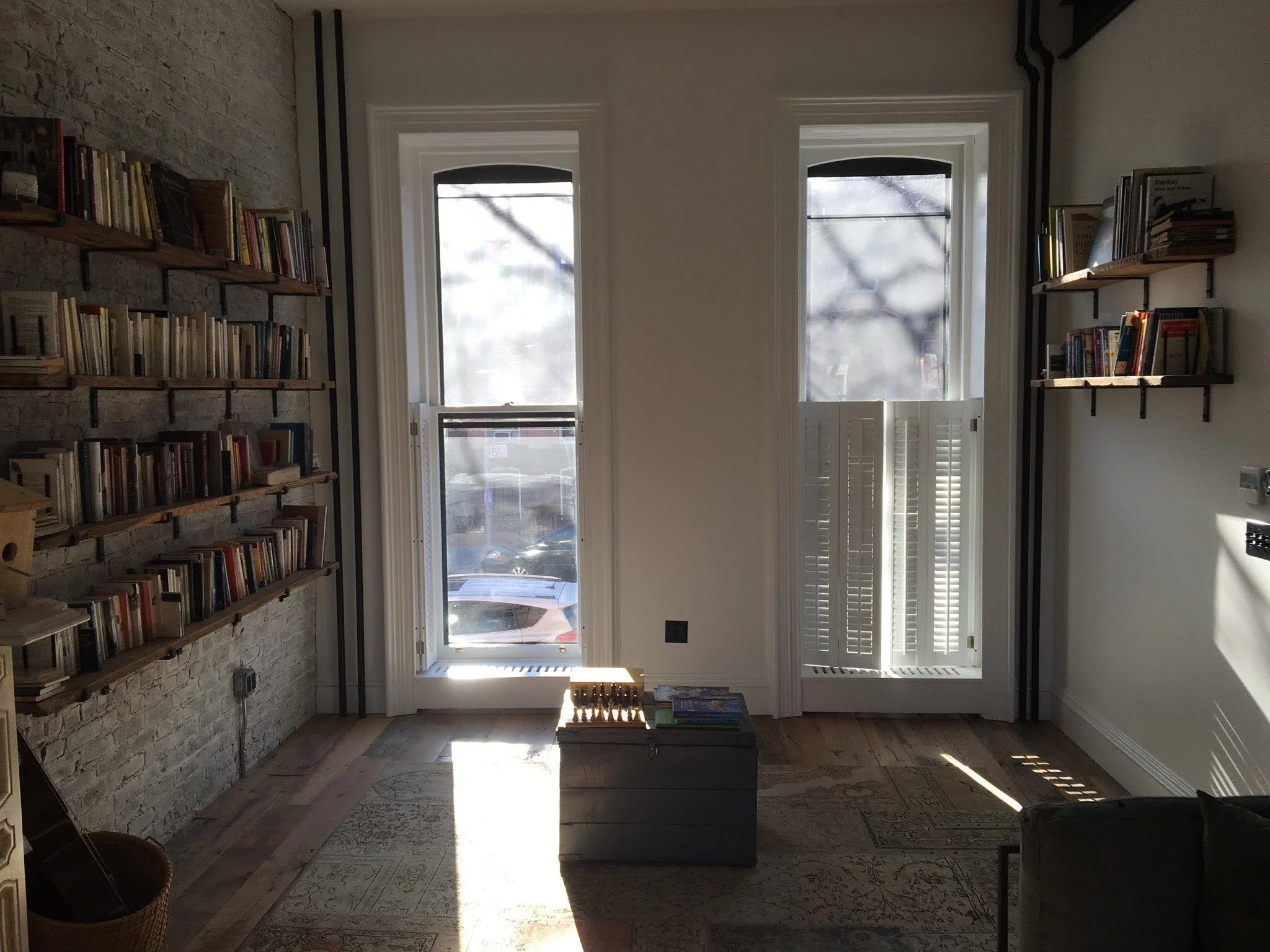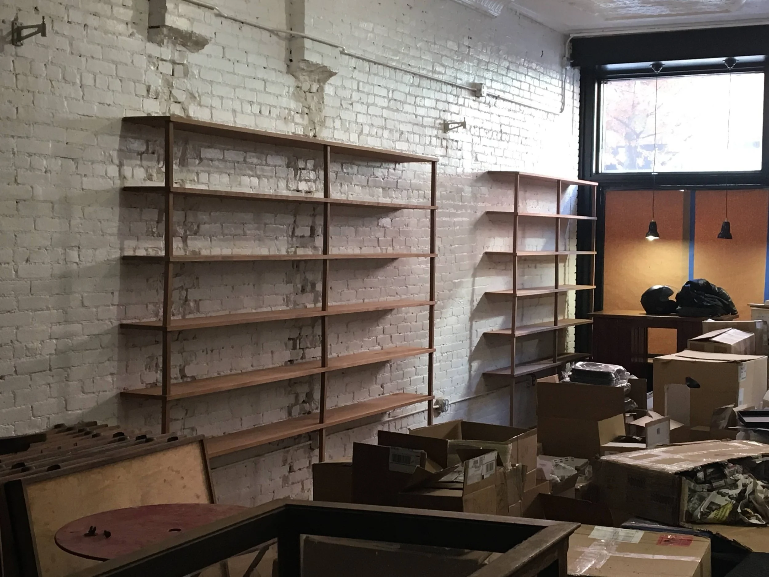Design, fabrication, and installation of various shelves made from reclaimed wood, sapele mahogany, birch, and baltic birch.